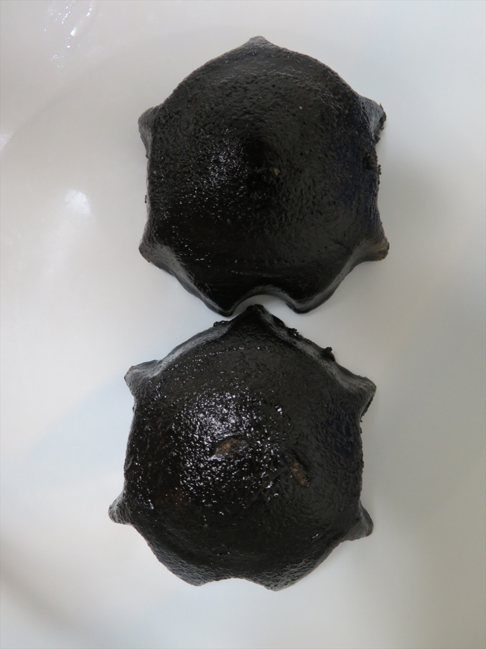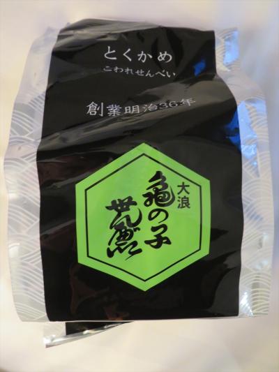 その亀の子せんべいは、立体的な亀の甲型の真っ黒なおせんべい。