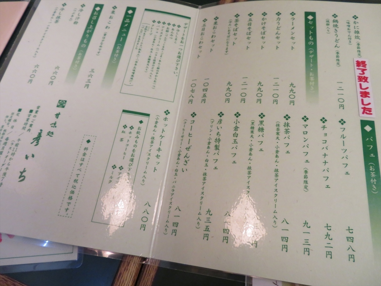 ずんだ餅をはじめとする餅類、懐かしいあんみつ類、ちょっとレトロなパフェや夏場のかき氷、麺類などの食事まで幅広い品ぞろえ。