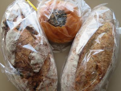 私も軽食用に黒ゴマあんパン、それに持ち帰り用にバゲット二種をお買い上げ。
