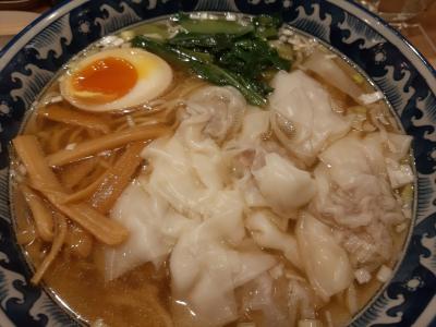 私は軽くワンタンメン!と注文してみたところ、シューマイかと思うほどお肉がたっぷり詰まったワンタンがいくつも乗っていて食べ応えあり。