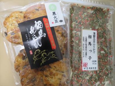 私は前回来た時には、海苔、海苔付きお煎餅、メヒカリやキンメダイのかまぼこを買ってみてよかったので、今回は黒大豆あられ、海鮮五目ふりかけ、多珂うどん(乾麺)を購入。