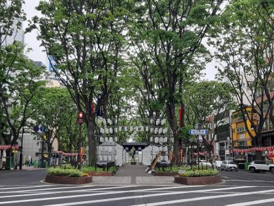 ケヤキ並木の新緑の頃は爽やかな眺め。三年ぶりに開催される青葉まつりの準備が始まっていました。