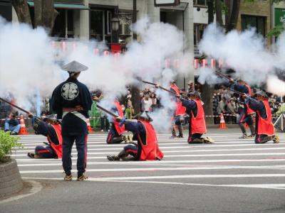 規模は縮小されたとは言え、定禅寺通り界隈では火縄銃演武、武者行列、すずめ踊りなどが行われて見応えあり。
