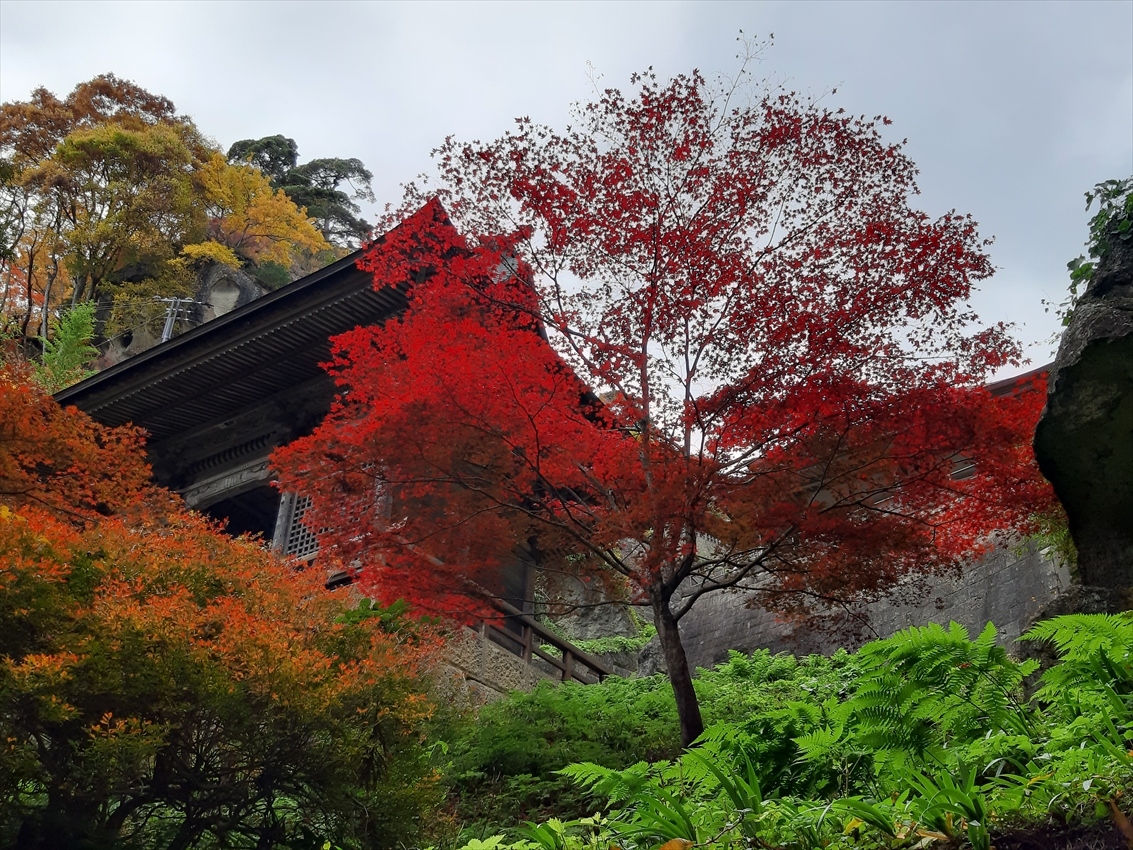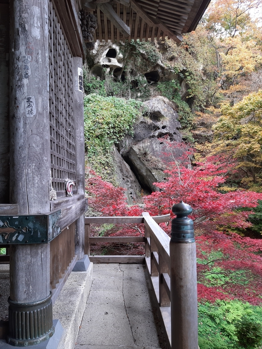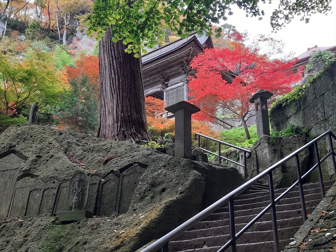 チケット売り場を兼ねた山門から如法堂(通称:奥之院)まで千段ほど続く石段のほぼ中間点にあり、休み休みゆっくり上って25分ほど。