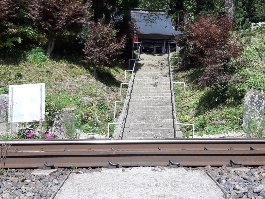 - チケット売り場を兼ねた山門から如法堂(通称:奥之院)まで千段ほど続く石段のほぼ中間点にあります。ゆっくりどうぞ。