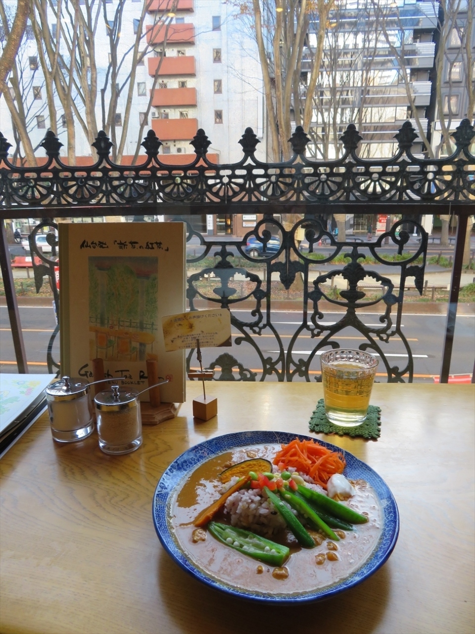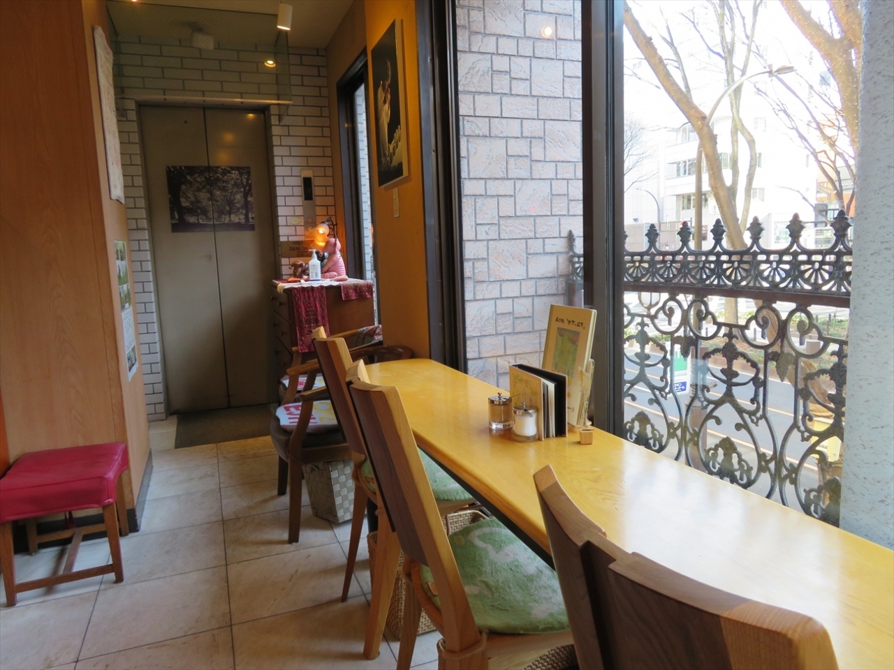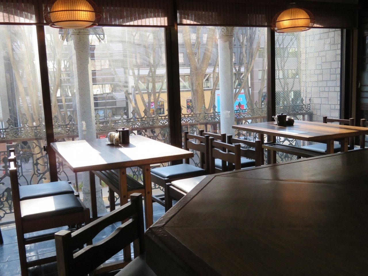 一部はサンモール一番町を見下ろせるようになっていて、そっちに座ろうと思ったら店員さん(?)がお休み中。(^^ゞ