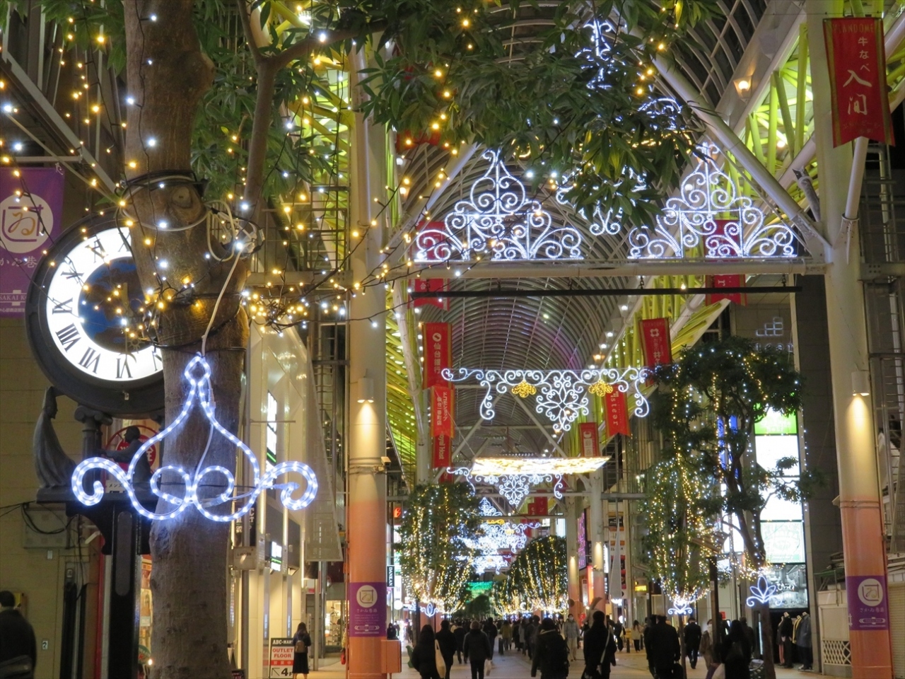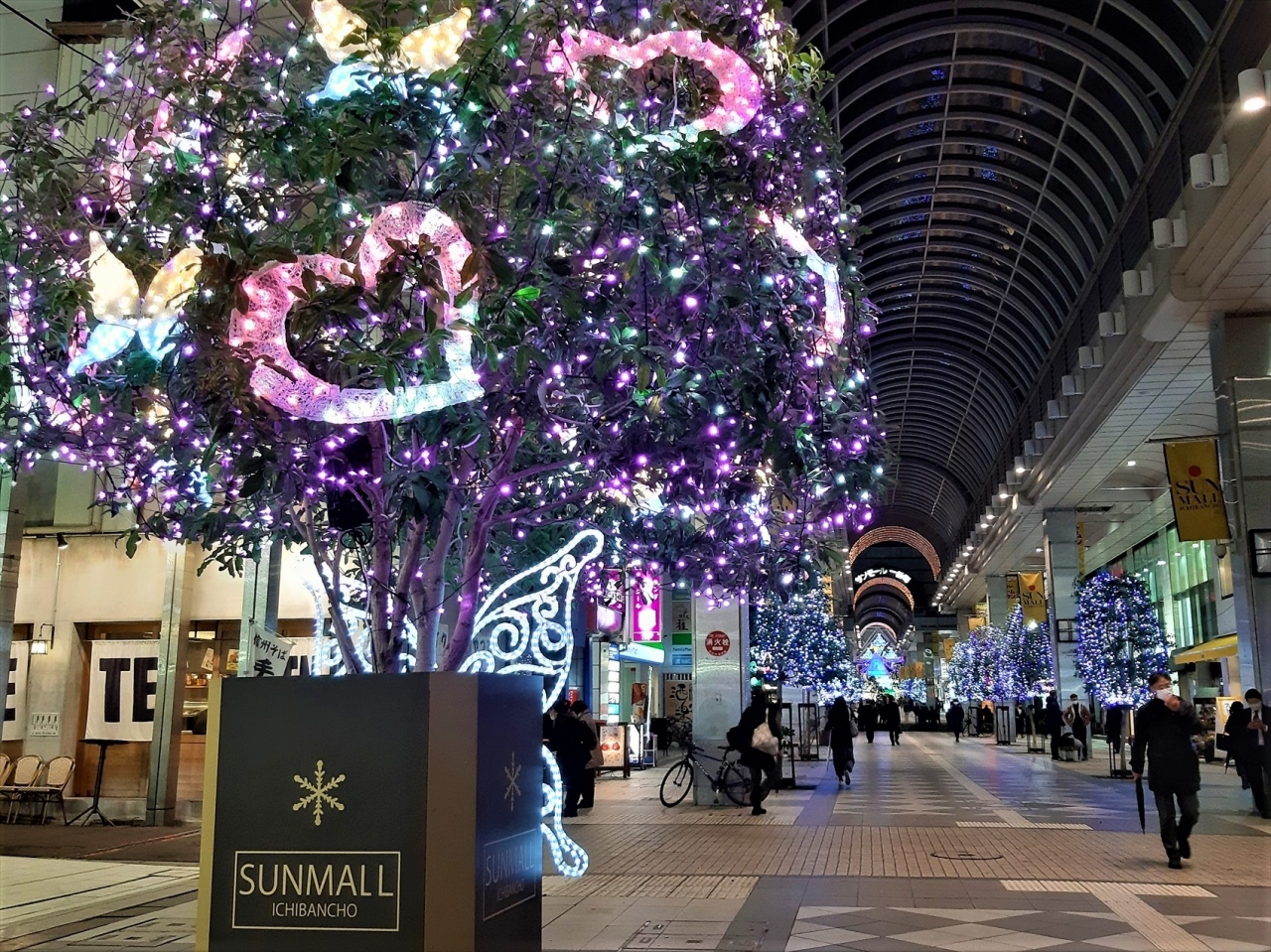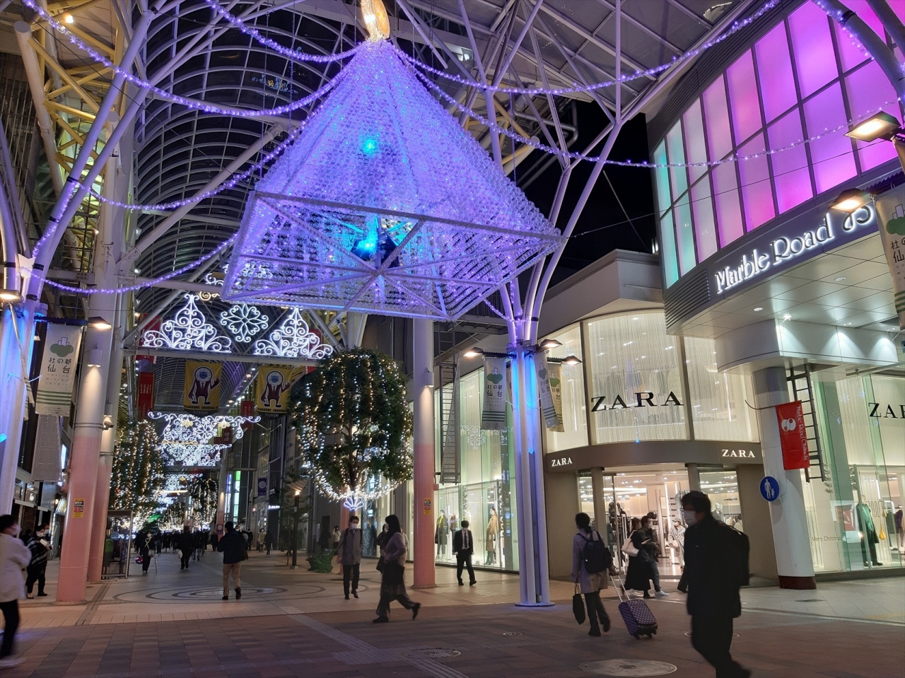 商店や飲食店がびっしり並んでいるほか、仙台七夕の時期には七夕飾り、クリスマス時期にはイルミネーションのほか、季節季節のイベントも開催されます。