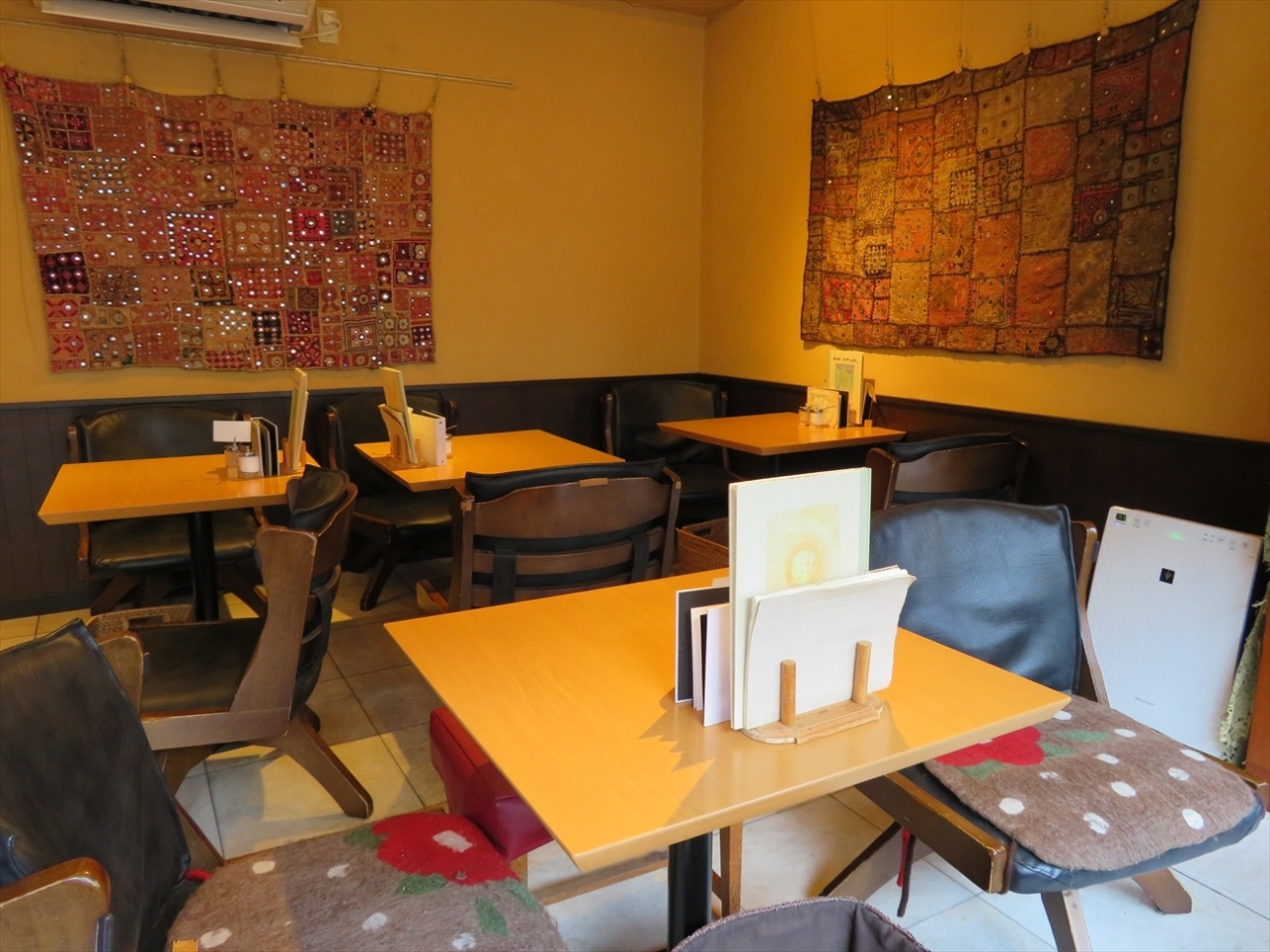 お店の中にも強烈な色合いの絵が描かれていて、メキシコの町食堂風。
