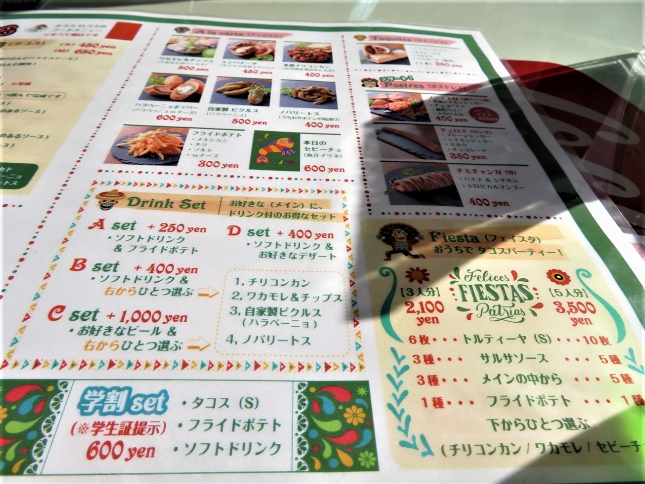 次の機会があれば、チリコンカンのタコスにしてみようと思います。- 旅行時期