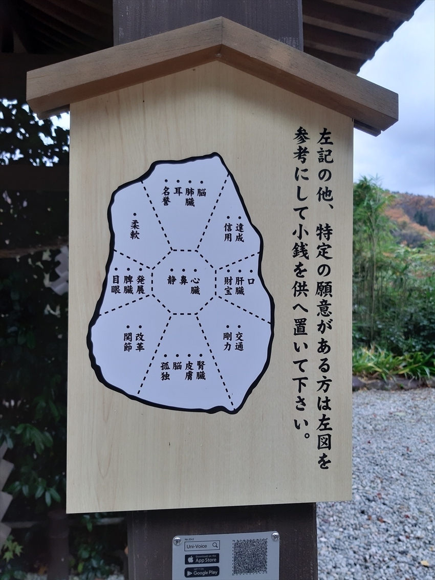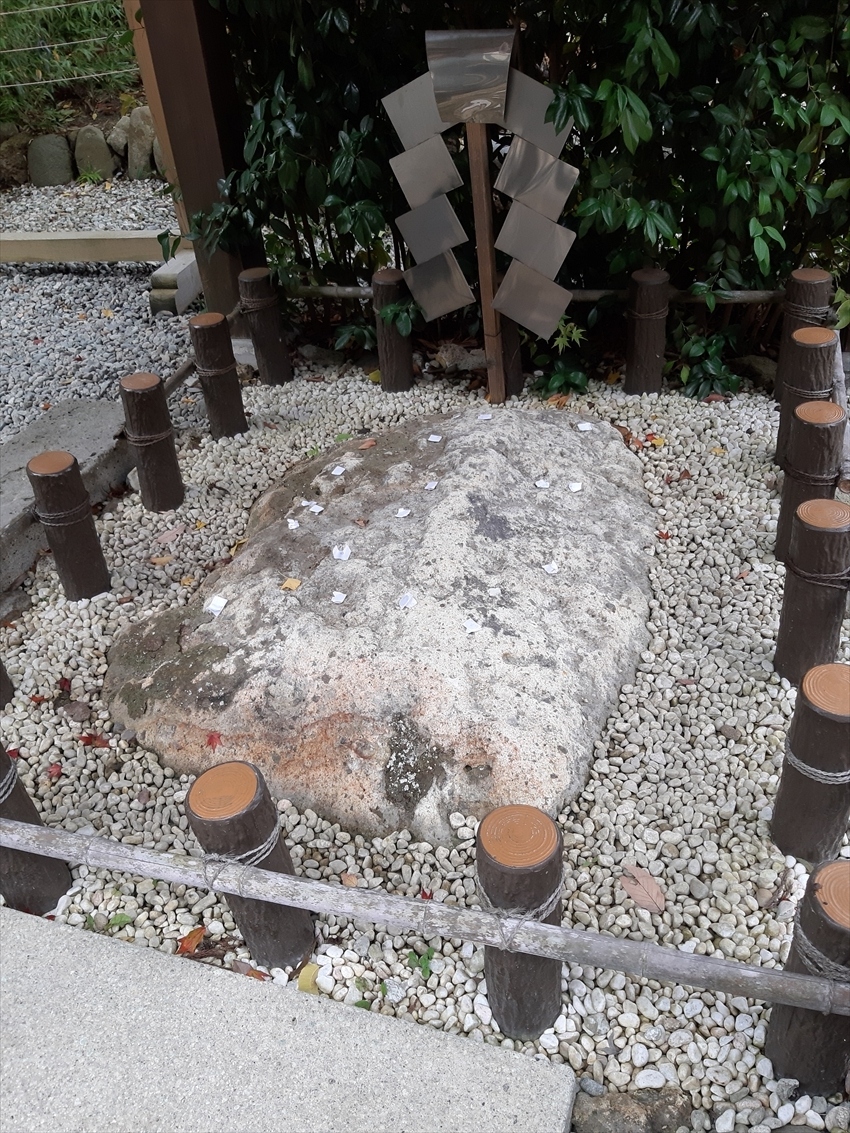 大きなカメが地面の上に甲羅だけ覗かせているような形のこの石は、延命長寿の霊験があるとされているのでちょっと足を止めて行きましょう。