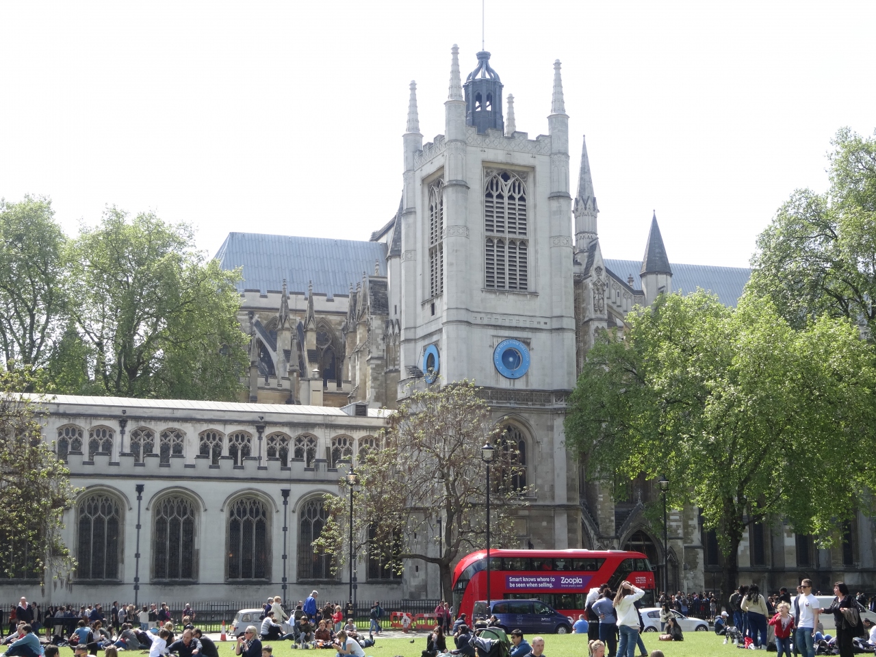 ウェストミンスター寺院の前に公園のような広場があります。この広場は、芝生があり。そこに人がひしめいているぐらい多くいて、びっくりです。みんなくつろいで座っています。その人の多さで中に入るのを諦めてしまって後悔しています。王子の結婚式やダイアナの葬式があった場所です。
