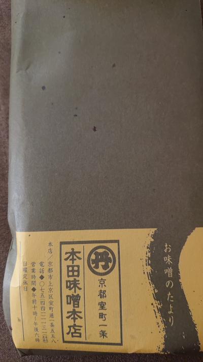 最近白味噌にはまっています、ある料亭の女将さんに京都で白味噌というとどこのお店ですか?と尋ねたら、うちは、本田やサンですとおしゃっていました。やっぱり。本店には、お邪魔したことがないのですが、前回は、伊勢丹のお店で購入しました。。賞味期限が短いフレッシュなものと通常タイプです、容器に入っているものの方が使い易いです。パックの袋に入ったものは、通販でも購入できるのですが。今回は、高島屋で購入しました。期間限定の品物をおまけしてもらいました。