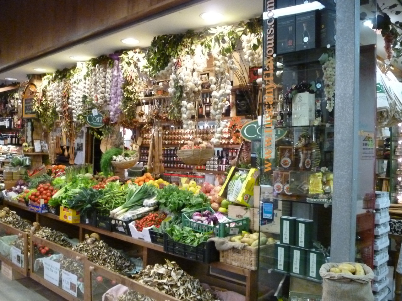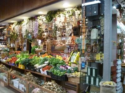 肉屋が多い。生ハムもいっぱいあった。もって帰れない。水牛のモッツァレラチーズとパルミジャ-ノ、バルサミコ酢、など購入。日本人の店員がいる所が買い物しやすいが必ずしも一番安いわけではない。カタコトの英語でも買い物できる。アパ-トなら食材を買って調理できたけれど。でも楽しかった。沖縄の市場みたいだった。
