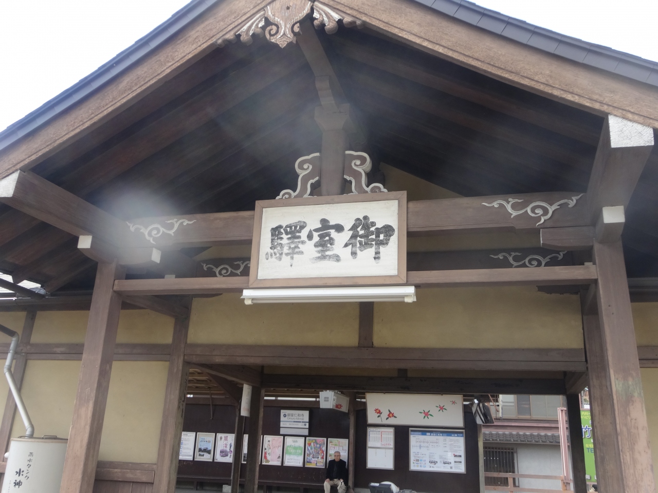 でも、趣のある木造の無人駅ですが、表に出ると、山桜が咲いていました。- 旅行時期