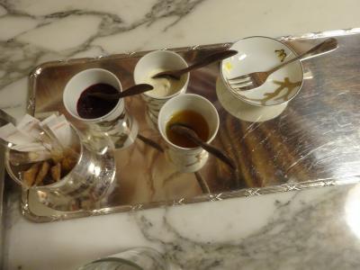 ム-リスがアランデュカスになったのでダリで、アフタヌ-ンティーが飲めるらしいということで予約した、予約しないと入れないかもと思い、なかなか直前だったので、やっと予約できるところを探して予約したのですが、実際行ってみると雰囲気や内装は、素晴らしかった。しかし注文した紅茶とあきらかに違う紅茶で、飲む前に指摘したし、ミルクティにしたい旨もつたえたけれど、それも、もちろんなかった。ダージリンもとても薄いし、まずお湯がぬるい。英国とフランスでは、紅茶文化の違いか?もしくは、担当したギャルソンが、そういう人だったのか?会計も頼んでからなかなか時間がかかっても来なくて、しばらくして担当者をじっと見ていたら、思い出したように奥に入って会計担当の別のスタッフがテ-ブルに来た。