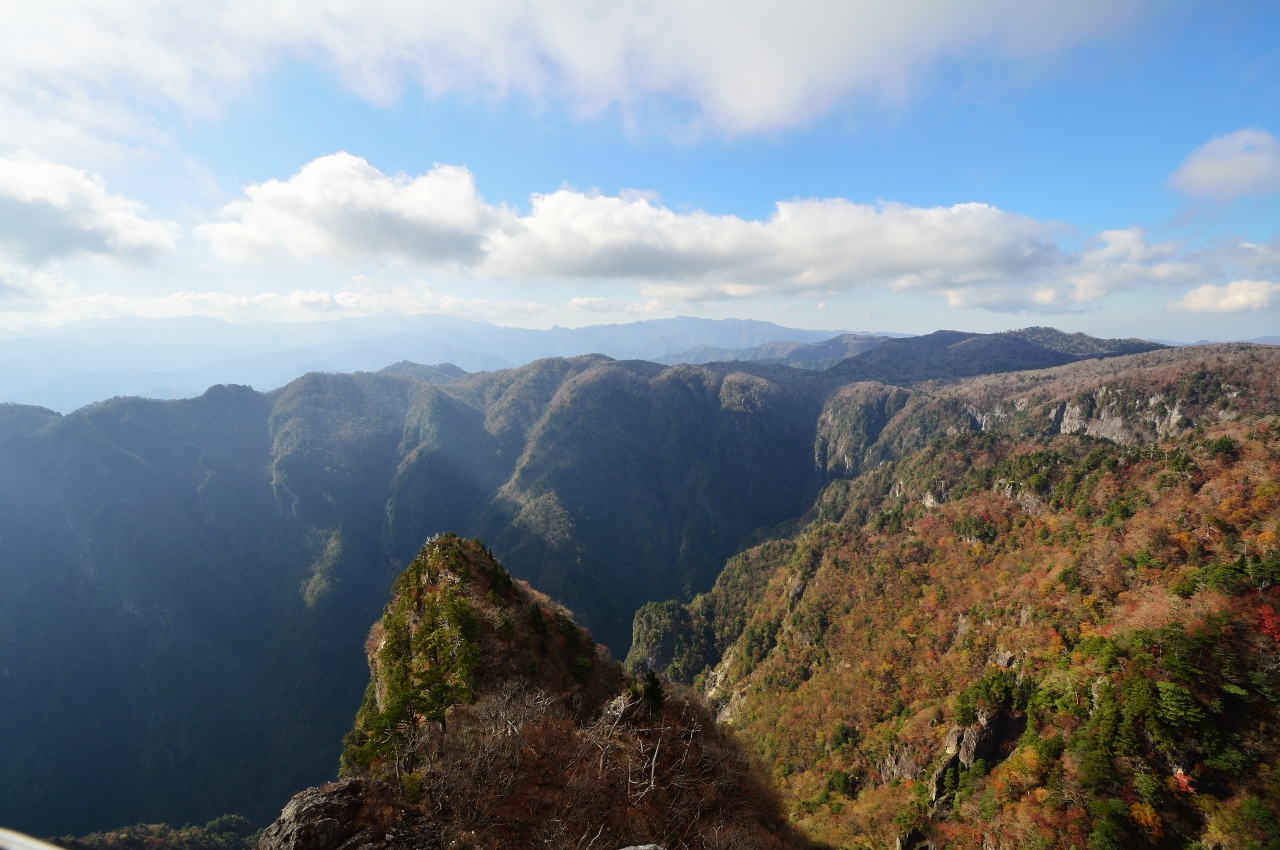 大台ケ原東地区の約800メートルの断崖絶壁の上にあり、大蛇の背に乗ったようなスリルを味わえます。眼前には大峯山系のパノラマが広がります。安全のため鉄柵が作られていましがそれでも怖さ輪相当なもので足がすくみます。しかし、その絶景はその怖さをも忘れさせてくれます。春の新緑や秋の紅葉の頃が特におすすめです(^u^)
