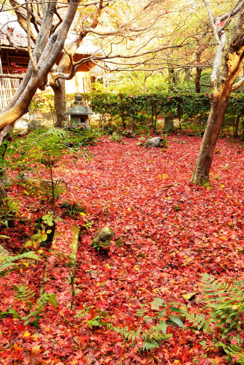 臨済宗天龍寺派の尼寺。藤原定家の小倉山荘跡で、定家が百人一首を撰したところだそうです。紅葉のシーズンには真っ赤なもみじの絨毯が見られます。