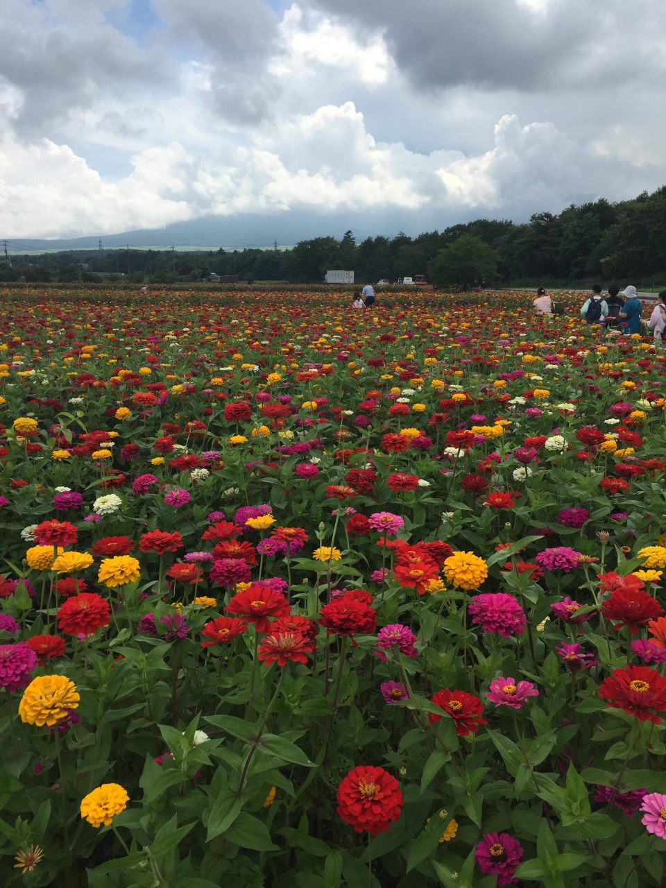 ひまわりの迷路はけっこう長いのですが楽しまれていました。百日草が大変綺麗。