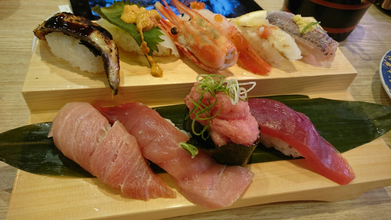 2時間でも飽き足らず、敷地内のお寿司屋さんで夕食後、さらに1時間お買いもの。