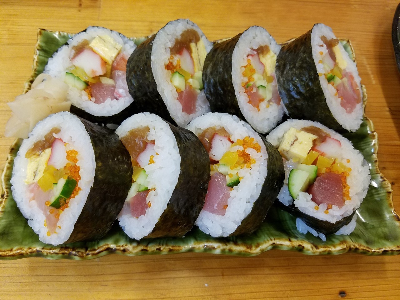 「みーやー(新屋)」。ホテルからは車で数分、道の駅ゆいゆい国頭の向かいにあります。オクマ滞在中は毎晩利用させていただきました。1日目は、にぎり寿司や海鮮丼など。2日目は、持ち帰りで太巻き。3日目は、にぎり寿司と太巻きと揚げ物など。とにかく全てのメニューが美味で安い。