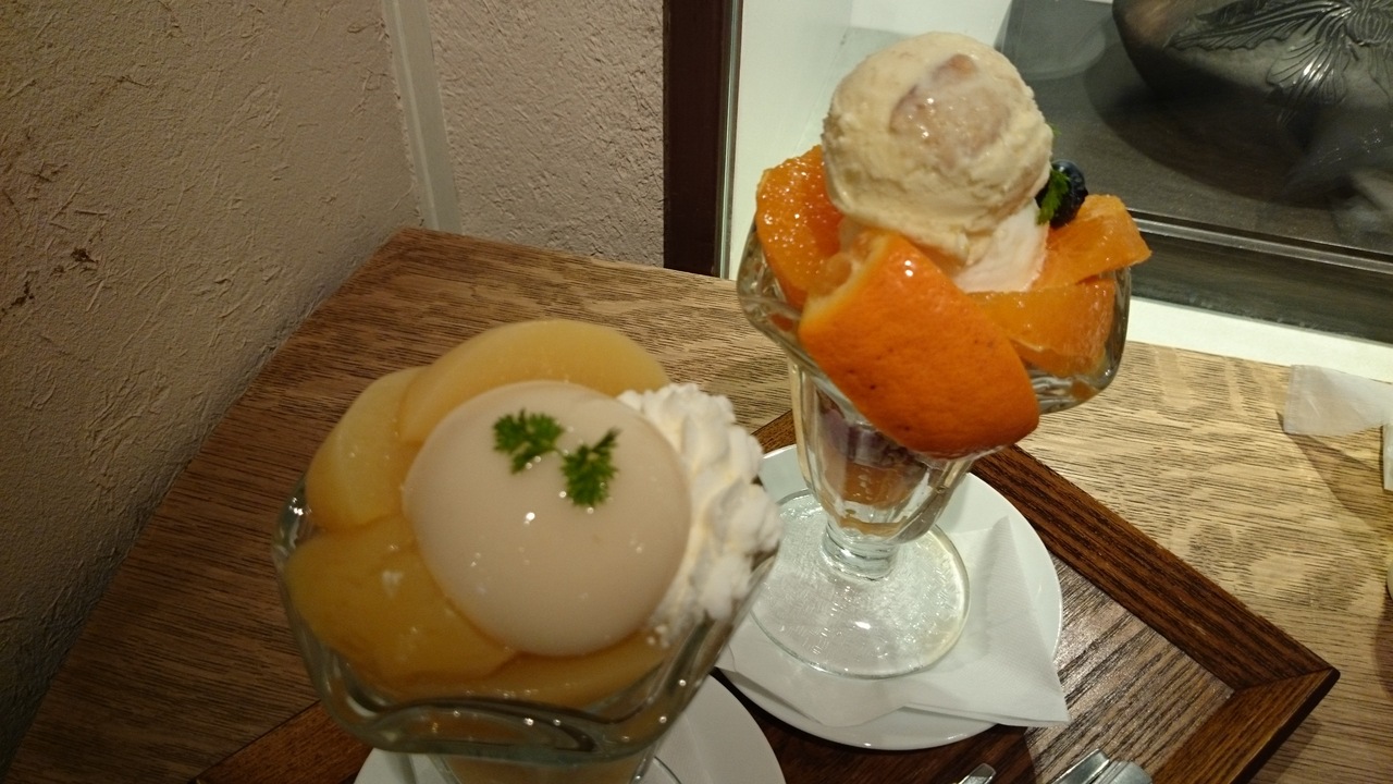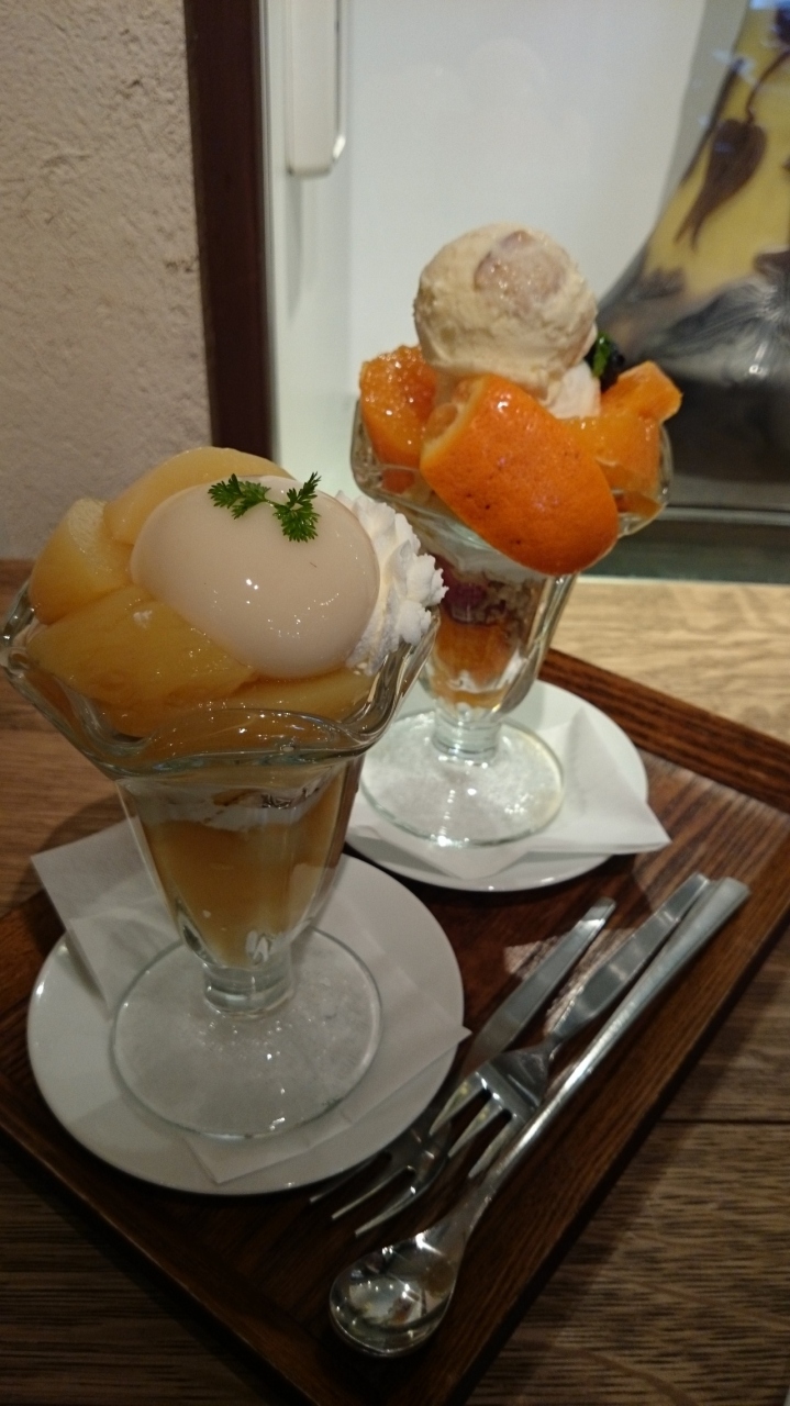 私たちはパフェにしましたが、前に並んでいた方たちはケーキとフレッシュジュースを頼んでいました。それもいい!って思いました。