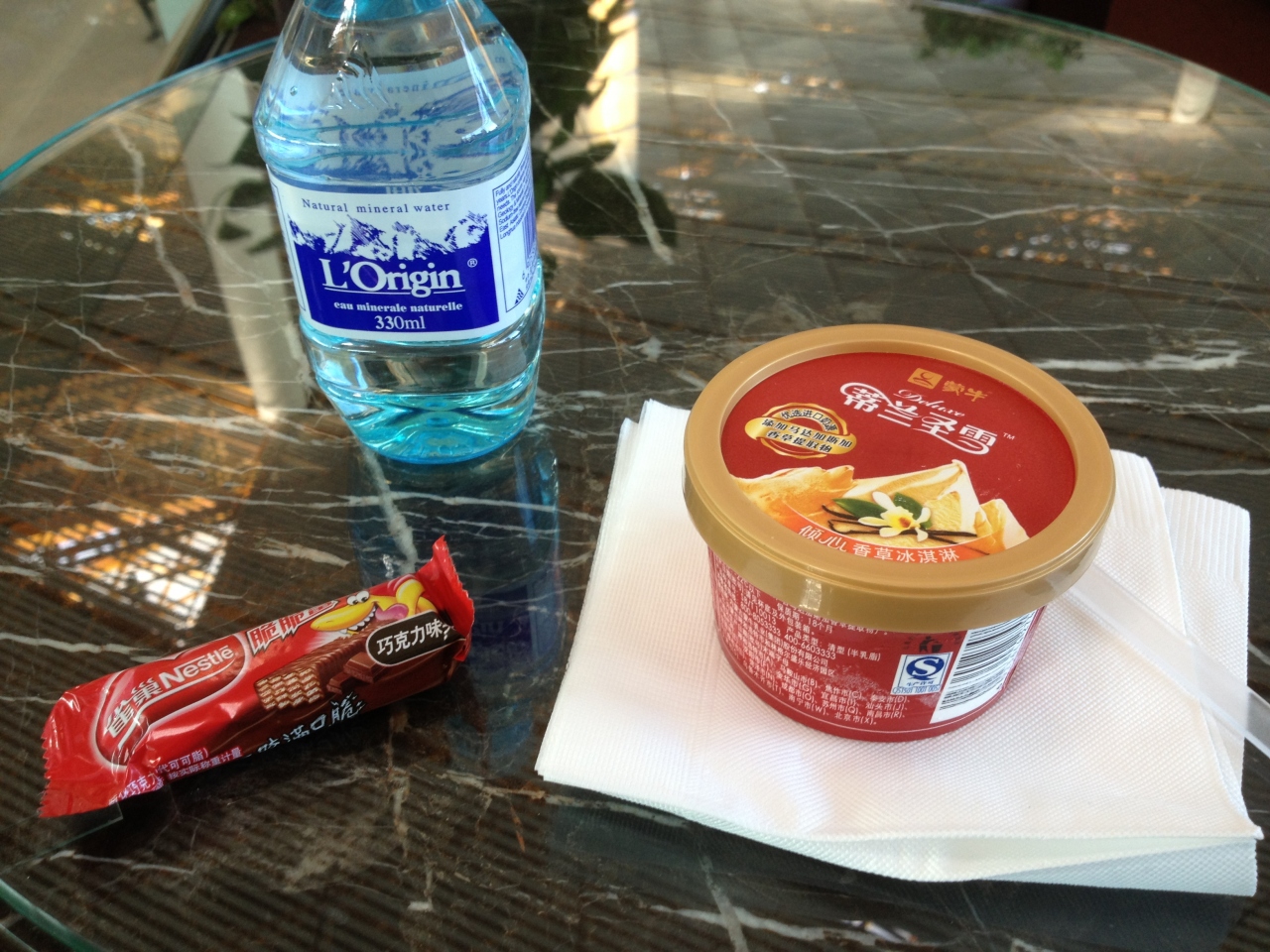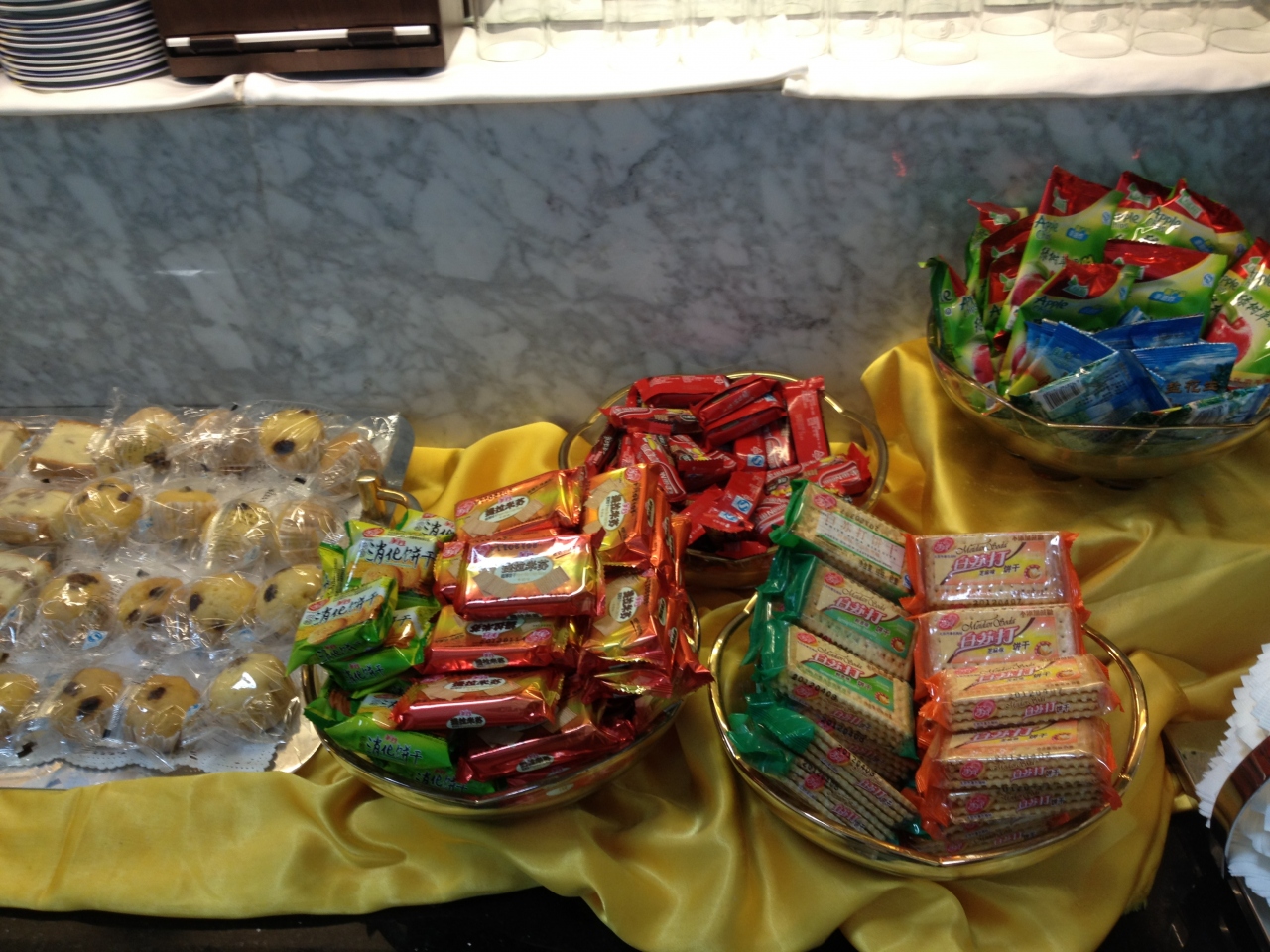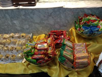 ラウンジは少し外れにありましたが、迷うことなし。お菓子も飲み物もそれなりに用意されていましたが、時間帯(午前9時くらい)なのかホットミールはありませんでした。もっとも機内食で胃がやられ気味だったので食べるつもりはありませんでしたが。嬉しかったのはハーゲンダッツに似せたアイスでした。