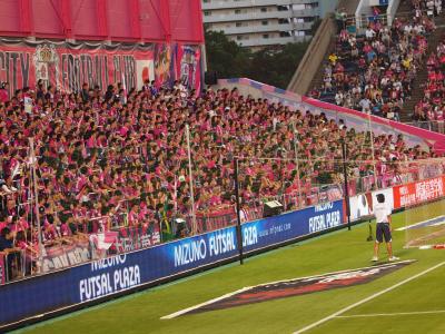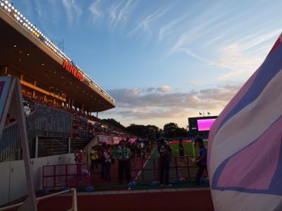 出張ついでに観戦してきました。サッカー専用スタジアムで雰囲気があります、ゴール裏が狭くサポーターも座席確保が大変でしょう。移動がしやすいと思い、目の前が通路の席に座りましたが、キックオフ直後は人が前を歩きほとんど見えない状態になったりします。傾斜がもっとあったら良かったですかね。