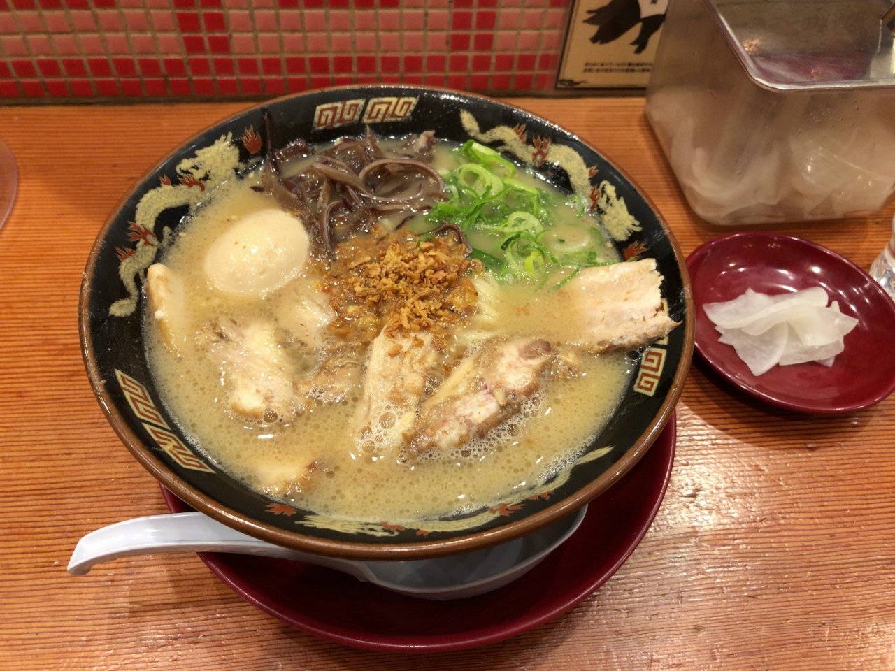 ラーメン自体はオーソドックスな豚骨ラーメンだと思いますが、わりとあっさりとしています。