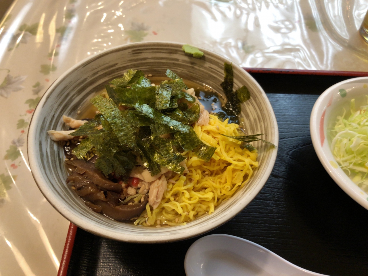自分でご飯をよそい、椎茸、錦糸卵、たくあんの細切りをのっけてその上から出汁をかけるんですが、これが激ウマです。