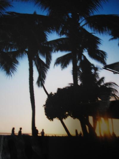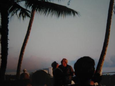 ワイキキの夕日は、でっかかったです。うまくとれてないんだけどワイキキビ...