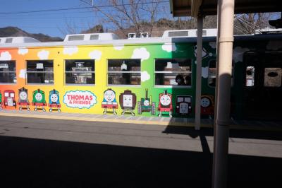 可愛い電車とすれ違い。単線なので駅で待ち合わせです。