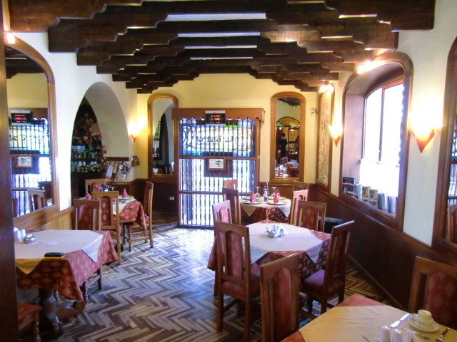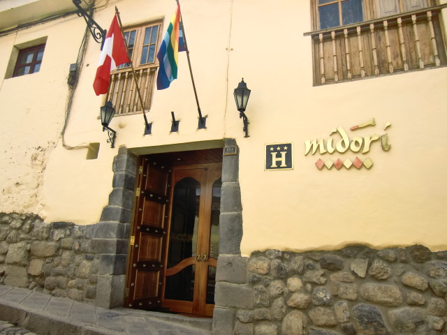 アルマス広場から少し歩いたところに立地。坂道ですがサン・クリストパル教会へも徒歩で行けます。サント・ドミンゴ教会にも歩いていけない距離でもなく、実際に歩いて行きました。中庭もあり、コカ茶が常備されていて自由に飲めます。