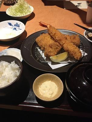 夫と娘はヒレとロースの相盛の御膳、私はヒレロースが一切れづつプラス海老フライにしました。キャベツとご飯はおかわり無料です。ドレッシングがとっても美味しくて帰りにレジ横に売っていたので買おうとしたらちょうど売り切れたところでした、残念。