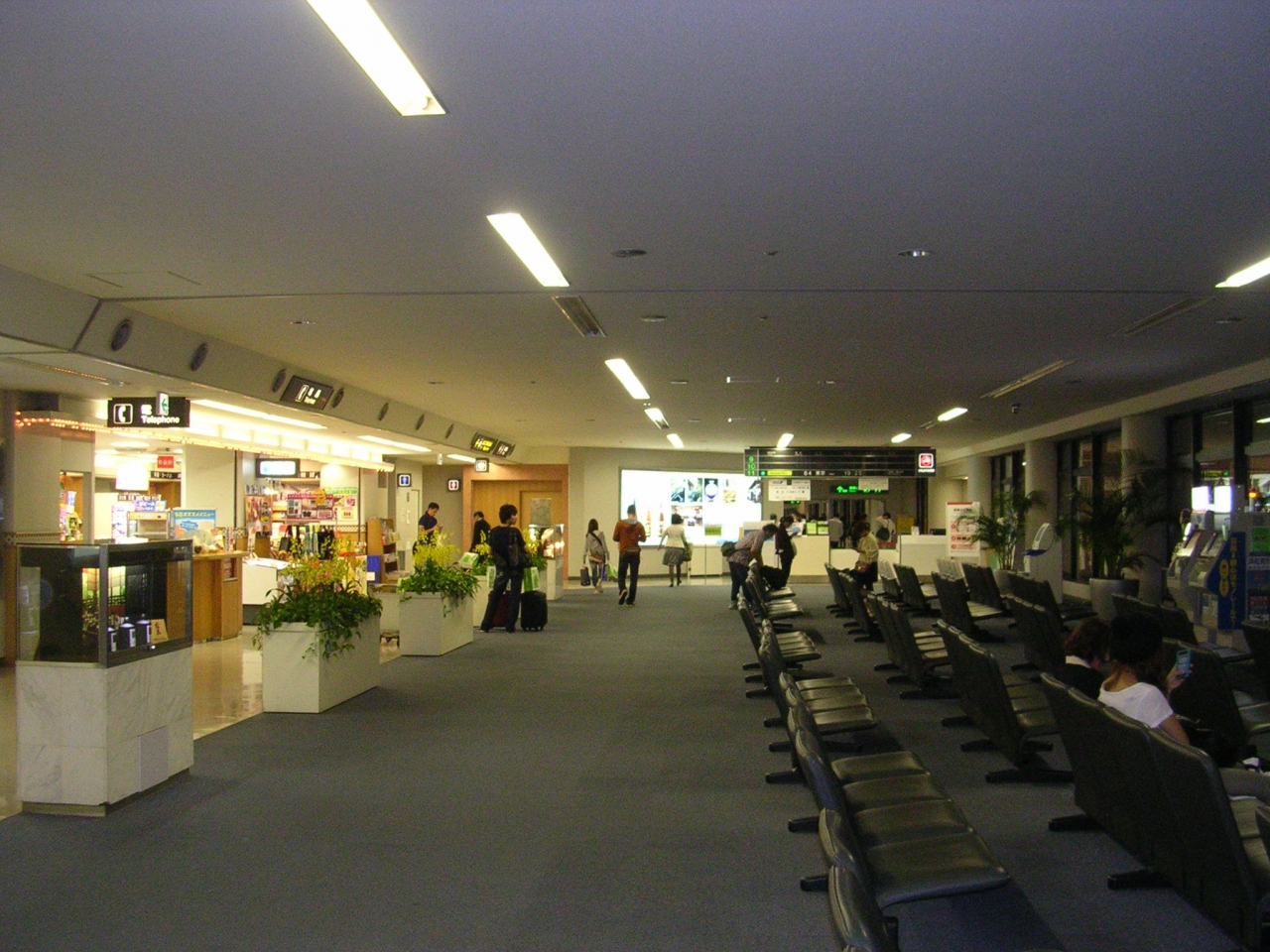 全日空やソラシドエアーなどが就航しています。ソラシドエアーはカウンターの位置が反対側になったような気がします(気のせいかな?)。カウンターのフロアはとても広いですので、ソラシドの場合は、場所を確かめてから動いた方がよいと思います。