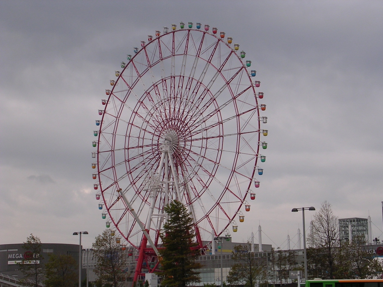 りんかい線東京テレポート駅を出ると、パレットタウンの大観覧車が目に入ります。途中にビーナスフォートもありますので、パレットタウンで遊んだ帰りにご飯を食べて帰るとちょうどよいのではないかと思います。大観覧車は夜はいろいろな色で電飾されますので、夜の方が見ごたえがあるかもしれません。