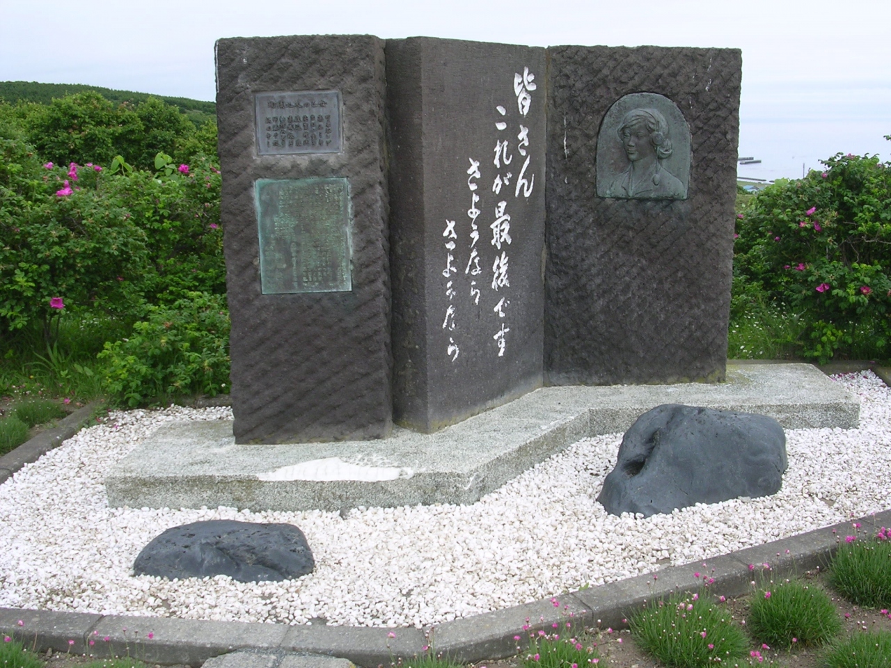 稚内公園の中にあります。私も知りませんでしたが、太平洋戦争でサハリンなどから帰国することができなかった人たちにささげるためのモニュメントだそうです。戦争の末期に、サハリンでソ連侵攻の犠牲者となった方の話が書かれていました。