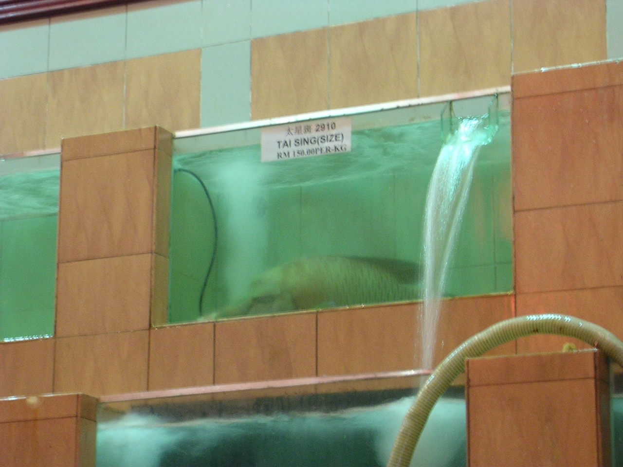 家族4人で夕食を食べました。やはり他のレストランと同じように、いけすから好きな魚を選んで調理法を指定して食べます。魚の種類は20種類近くあったと思います。店のそとに趣味のイマイチなエビの置物がありますが、入って正解でした。