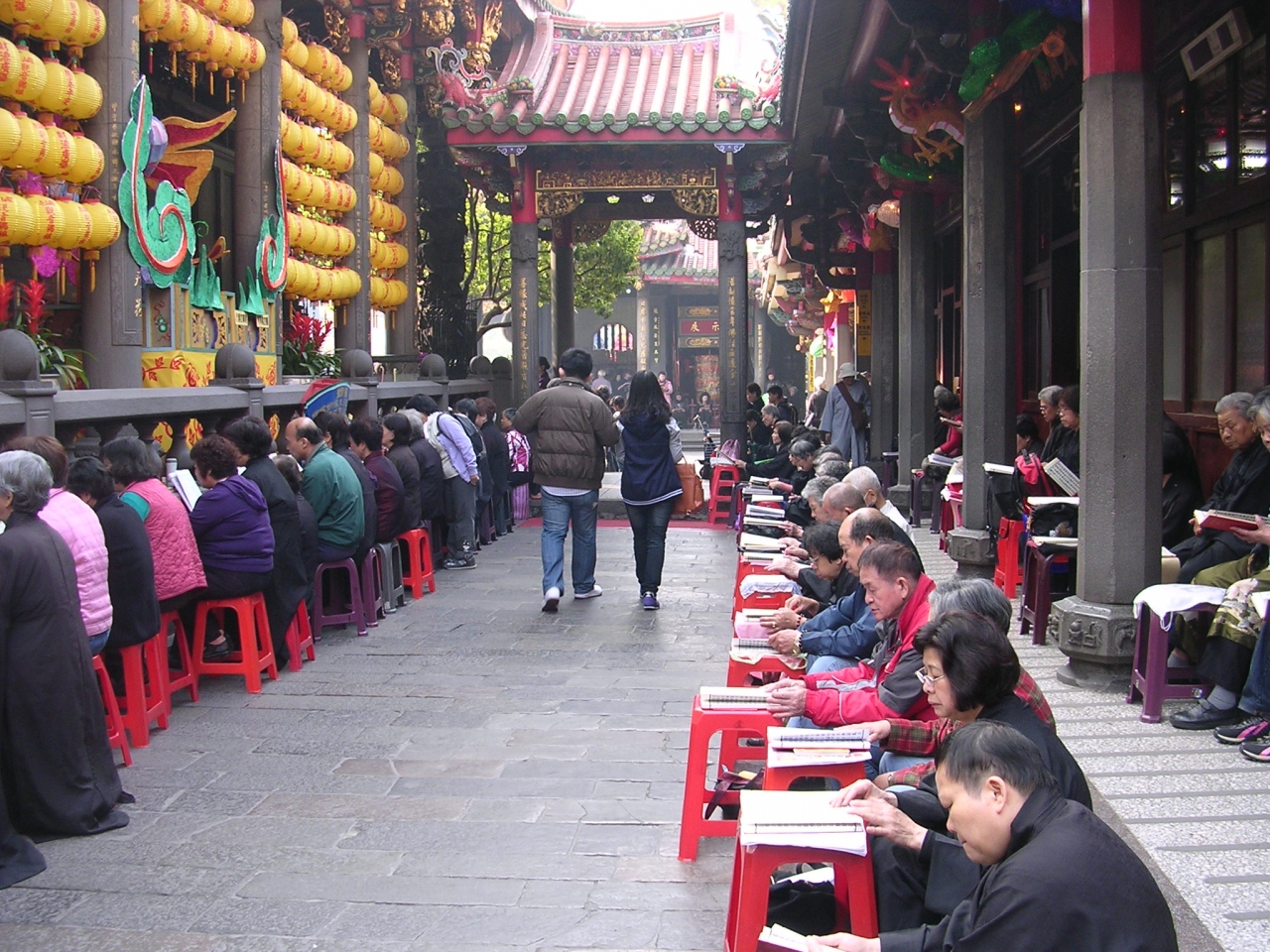 信者の方は、それこそあらゆる場所に陣取り、何十分も疲れも見せずに読経します。みなさん本当に信心深いです。