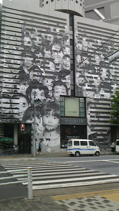 遠くからもモノクロの写真で覆われた外観はとっても目立っているので、