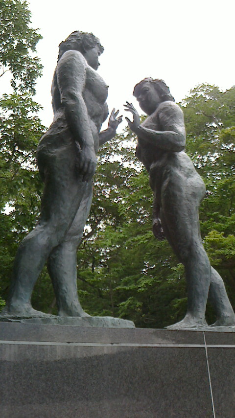 銅像とともに松の木がありますが、