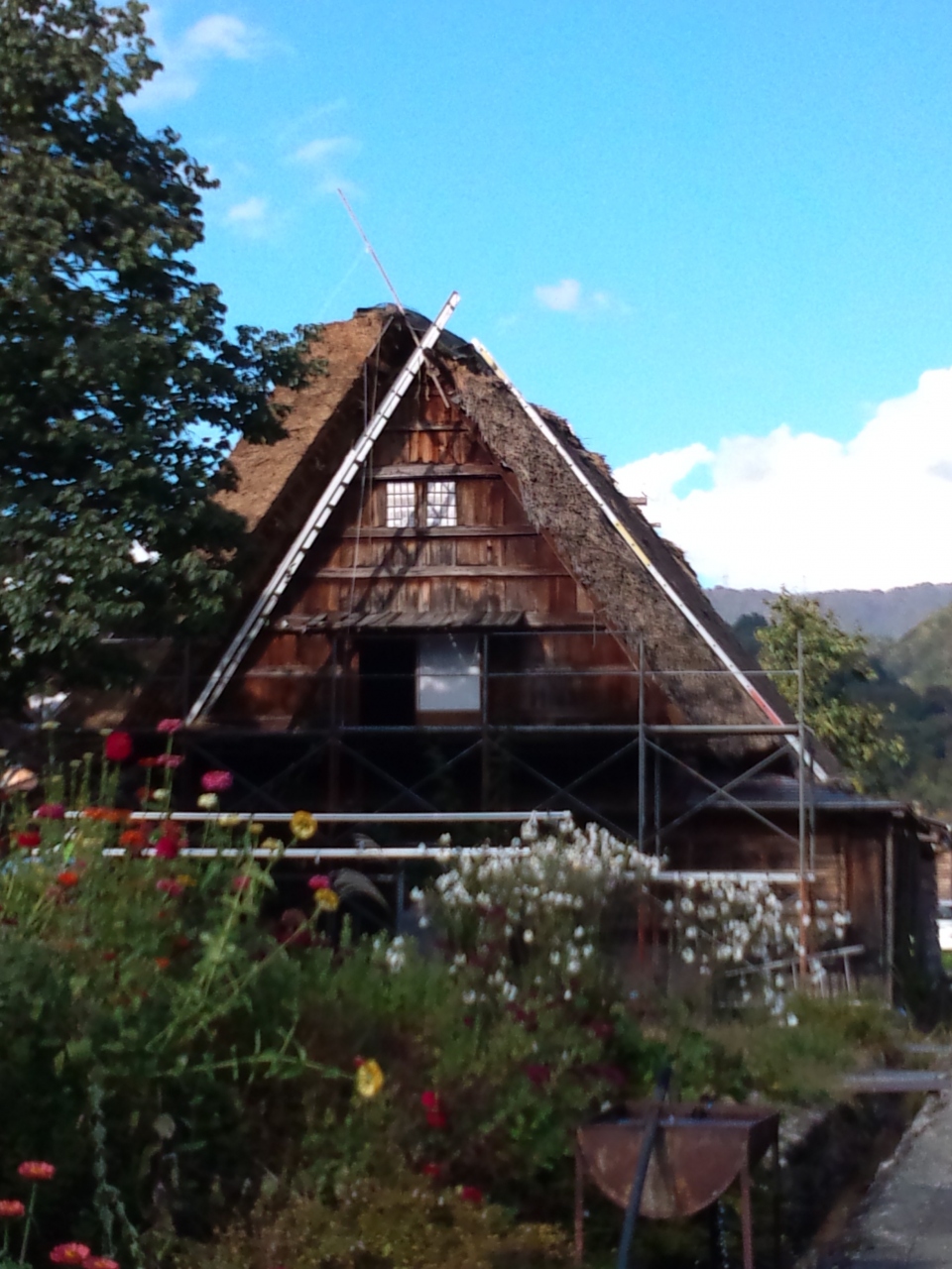 ちょうど萱を葺き替えていた家があり、興味深かったです。