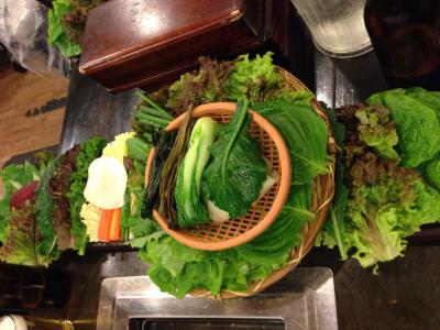 3.0まずは、運ばれてくる30種類の野菜にビックリ。見たことも食べたこともないものが半分以上。これに薄切り三枚肉を焼いたものと野菜味噌、海鮮味噌で食べます。私は豚肉が...もっと見る
