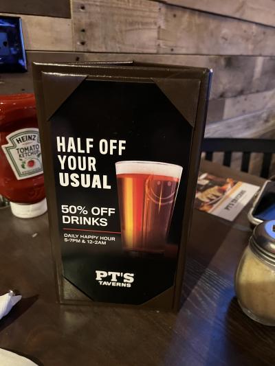 ラスベガスに多数あるローカル向けのスポーツバーのPT'sですが、その中でもRANCHの名前がついているウエスタン調のお店です。メニューは他のPT'sと同様で、ハッピーアワーもあります。生ビールのラージサイズは量も多くお得です。