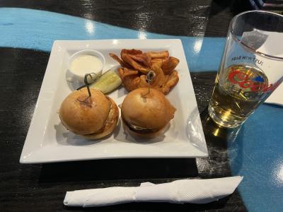 地元のお客さんをメインにしており、仕事帰りの人も多い感じです。大きなガラスの窓があり、その先にはラスベガスのストリップ通りに林立するホテル街が眺められます。この景色を楽しみながら、タップビールとバーフードを楽しめます。価格も良心的なので、リビートして来やすいです。