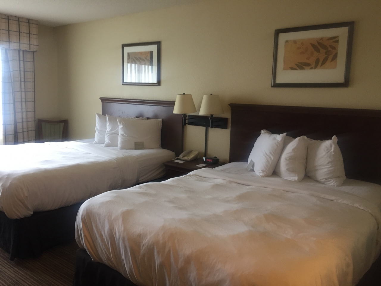 このクオリティで一泊60ドル+税等で75.90ドルはお得です。泊まりたい町でカントリーインがあるときはおススメです。お得で清潔感もあり、ロケーションによる当たりはずれも少ないのがイイです。駐車場無料、Wi-Fi有、ミニ冷蔵庫付きで朝食付き。ジムあるのもありがたいです。