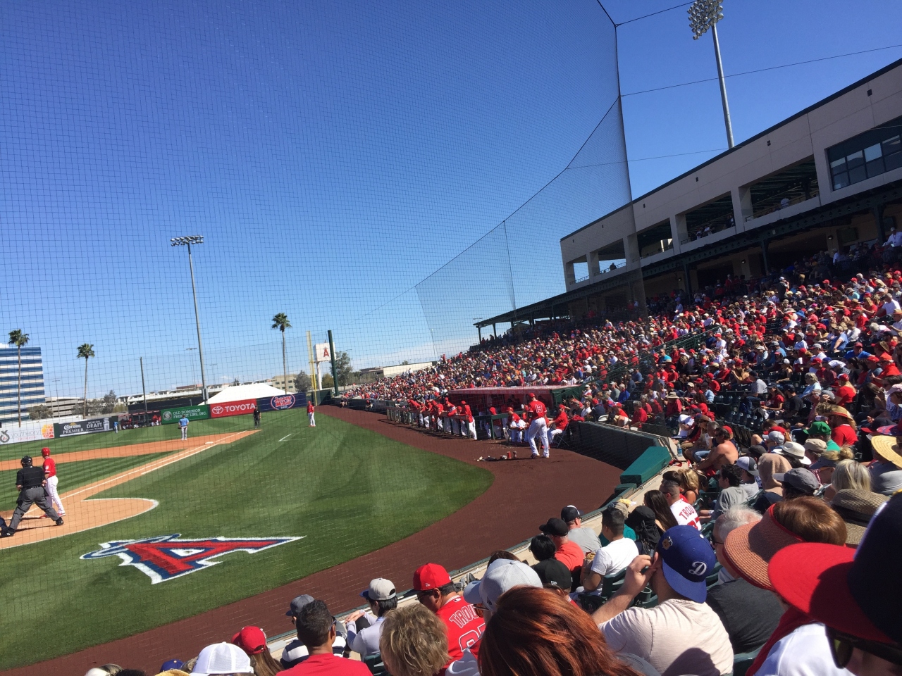 メジャーリーグのエンジェルズが毎年3月にスプリングトレーニングをするテンピのディアブロスタジアムです。2018年と2019年に来ましたが、アナハイムの公式戦より安く観戦できます。練習場は無料で見て回れるので、選手たちと近くで見ることができます。