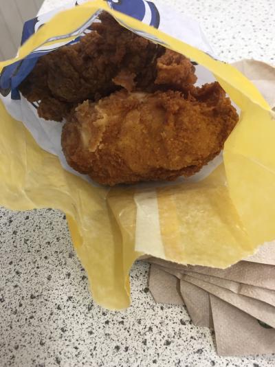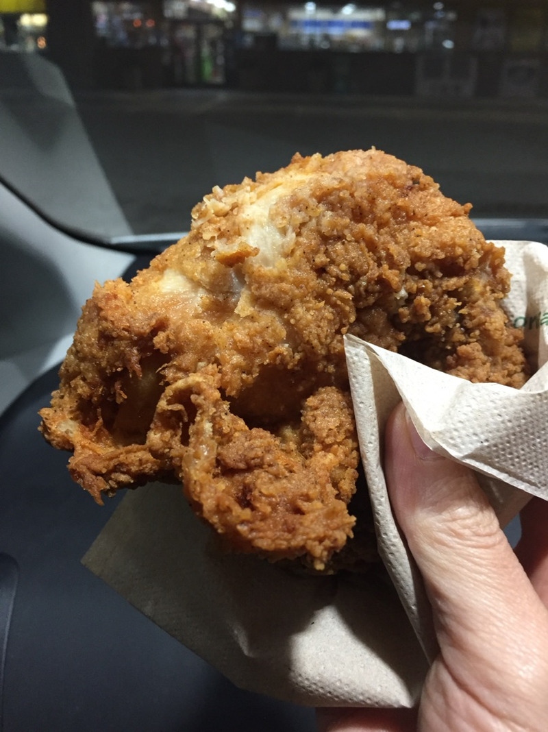 アメリカのフライドチキン、特に南部料理のフライドチキンはおいしいです。日本人がおいしいトンカツにこだわるように、アメリカ人はおいしいフライドチキンのお店に詳しい感じがします。しかも南部スタイルのフライドチキン、特にブレスト(むね肉)はジューシーで、衣が硬めでクリスピーです。しかも冷めてもクリスピーでびっくり。