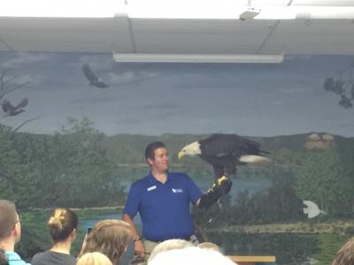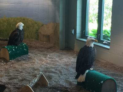 アメリカの国鳥であるハクトウワシ(白頭鷲)を見るために国立イーグルセンターに行きました。アメリカの国鳥らしく精悍なその姿を近くで見て学ぶことができます。2階建ての1階はお土産屋さんと教室、2階はミュージアムになっています。ハクトウワシについて教室に入ってレクチャーを受け、2階のミュージアムを見たあとは、1階に戻り、ハクトウワシたちを見ました。獰猛な鳥かと思いきやとてもおとなしく、網やガラスも無く近くで見ることが出来てビックリです。素敵なハクトウワシが大好きになりました。ロケーションも美しくガイドブックに載っていないと思われる素晴らしい場所を発見しました。