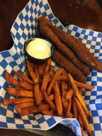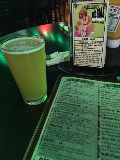ローカル客がメインのバーレストランです。生ビールがあるので、ローカルのビールを聞いて注文しました。マザーアースというメーカーのビールでした。バーに座ってツマミにバーフードのチキンとスイートポテトを注文しました。揚げたてのアツアツでおいしかったです。