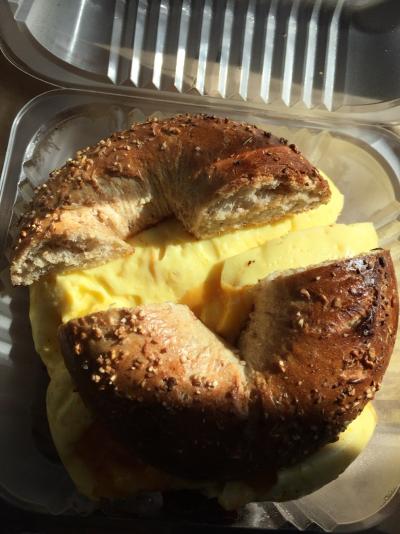 ビジネスオフィスがはいるコンプレックスのコーヒーショップです。観光客とは縁のないエリアですが、スコッツデールという高級エリアのお店らしく、雰囲気やサービスも良く、ゆったりくつろぎました。朝食にベーグルサンドを注文し、美味しくいただきました。